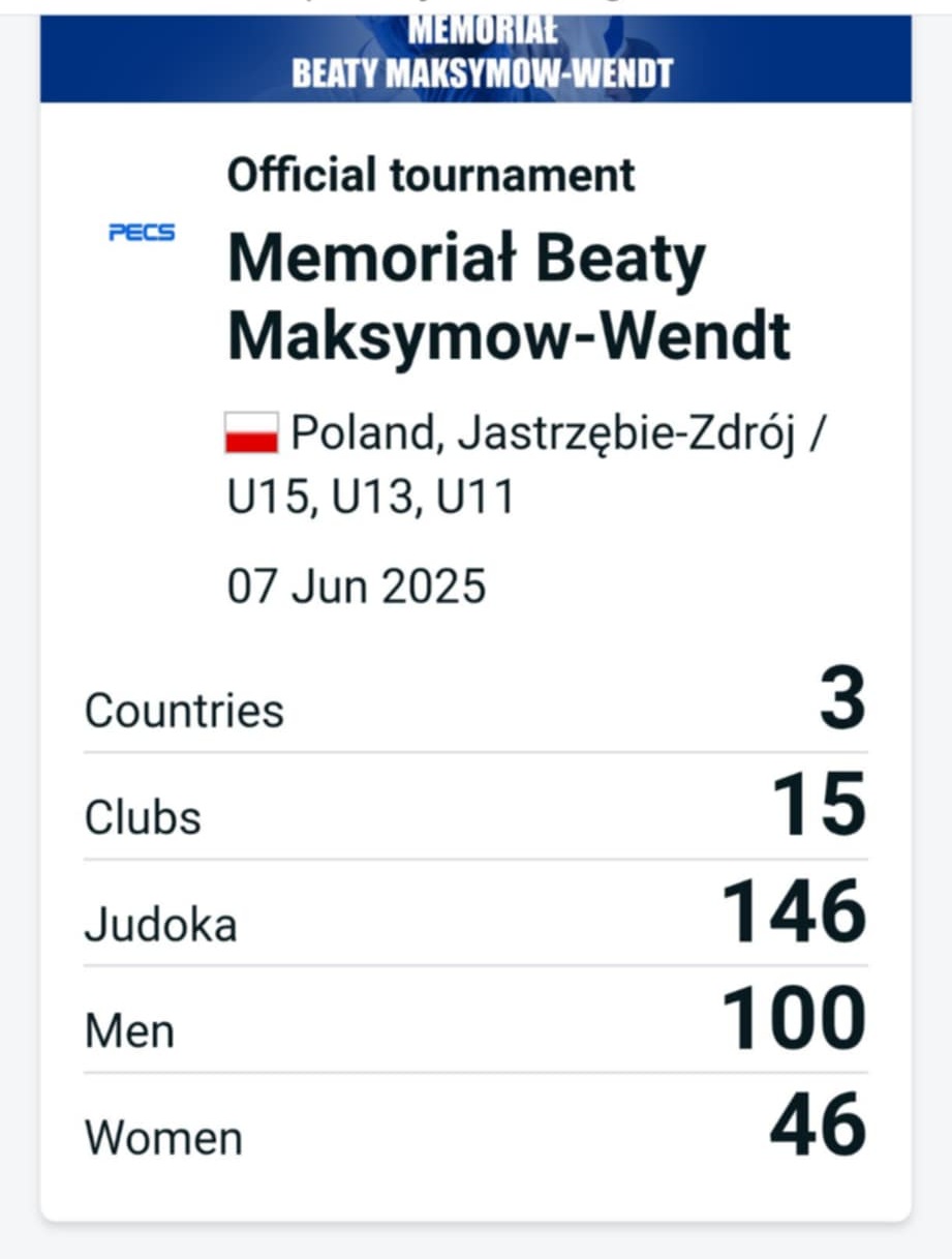 Kinga Kocyk, Wiktoria Mędrek, Maciej Mędrek i Piotr Kyć uczestniczyli w I Memoriale naszej Mistrzyni. Zawody na wysokim poziomie, bardzo dobrze zorganizowane z aplikacją do śledzenia rozpisek walk i transmisją na żywo 3 tatami – Judo Manager.